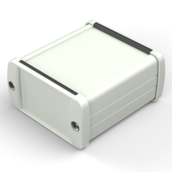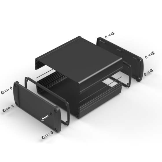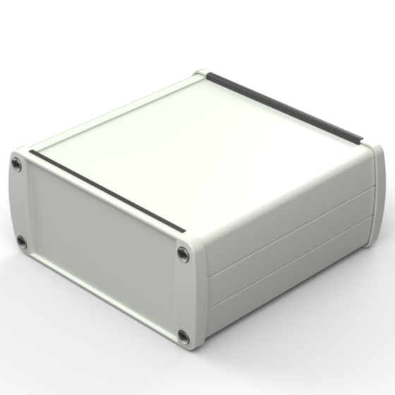 Contenitore in alluminio estruso con verniciatura esterna a polvere di elevato standard qualitativo. Due pannelli frontali in metallo, guarnizioni in gomma per protezione da acqua e polvere (IP65) disponibile in sei colori diversi, guide interne per PCB e parte superiore con area ribassata per l’alloggiamento di una tastiera a membrana. I modelli con “-E” sono dotati di pannelli in metallo flangiati per montaggio a parete. Chiusura a quattro od otto viti.