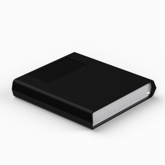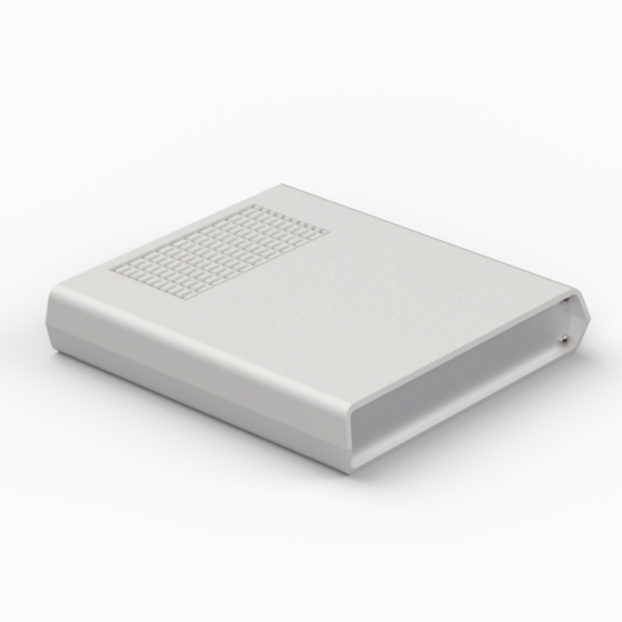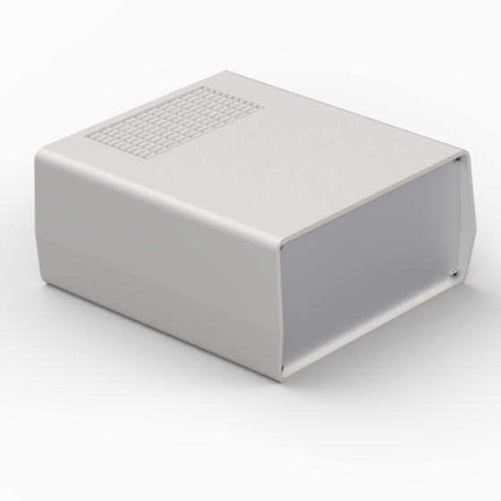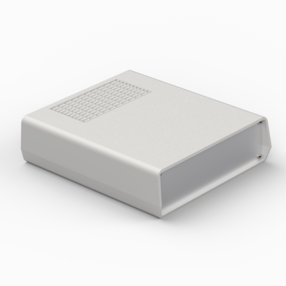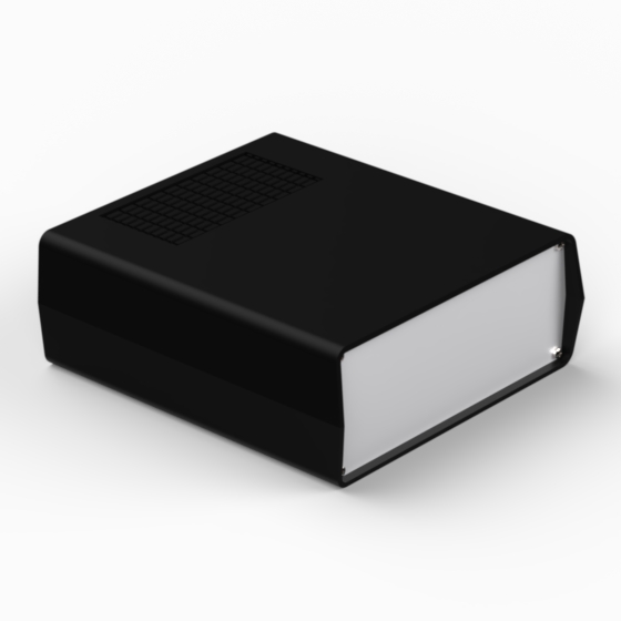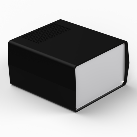 Contenitori in ABS con superfici opache e dotati di due pannelli frontali in alluminio di spessore 1 mm. I gusci superiori ed inferiori sono dotati di una foratura per aerazione e sono dotati di punti di fissaggio per PCB. Chiusura a otto viti.