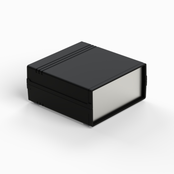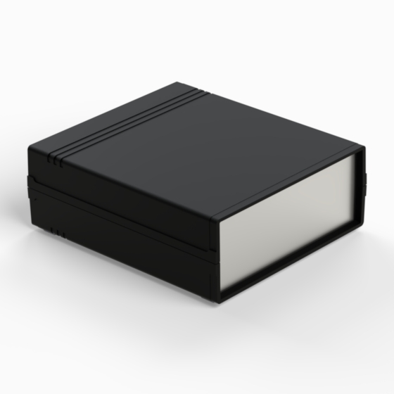 Contenitore in ABS con superfici opache e pannelli in alluminio di spessore 1 mm. All’interno sono presenti guide e punti di fissaggio per PCB. Chiusura con due viti. Il contenitore può essere dotato di pannelli in ABS di colore grigio chiaro (codice colore .13). Versione pannello in plastica: 011P, 012P, 022P, 222P, 223P, 233P.