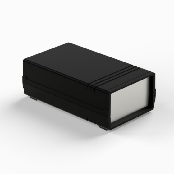 Contenitore in ABS con superfici opache e pannelli in alluminio di spessore 1 mm. All’interno sono presenti guide e punti di fissaggio per PCB. Chiusura con due viti. Il contenitore può essere dotato di pannelli in plastica (Mod. PPD1, PPD2 e PPD3).