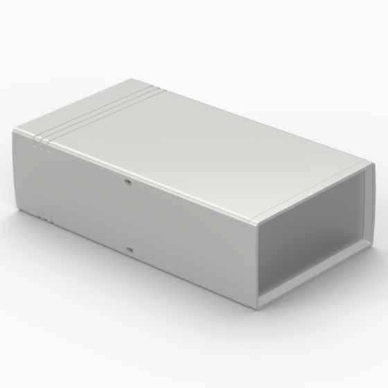 Contenitori in ABS con pannelli frontali in alluminio di spessore 1 mm. All’interno di entrambi i semigusci sono presenti punti di fissaggio per PCB (Eurocard 100 x 160 mm.). Superfici opache. Montaggio rapido ad incastro, senza viti.