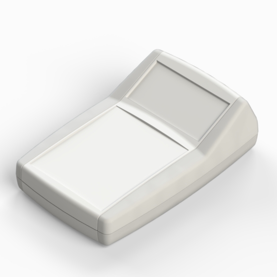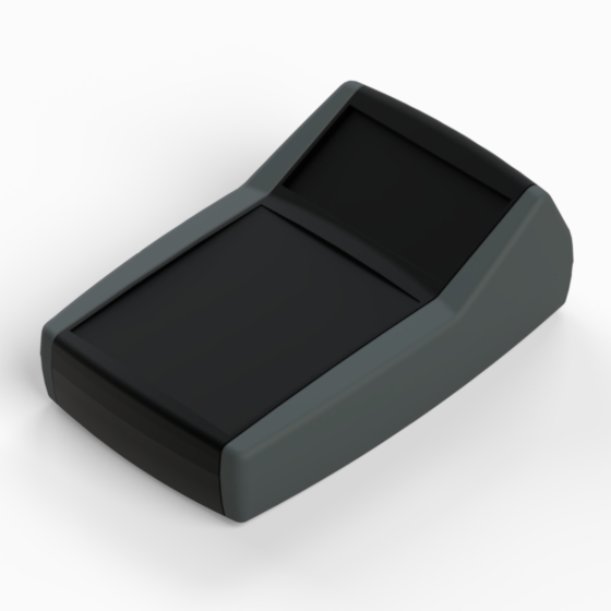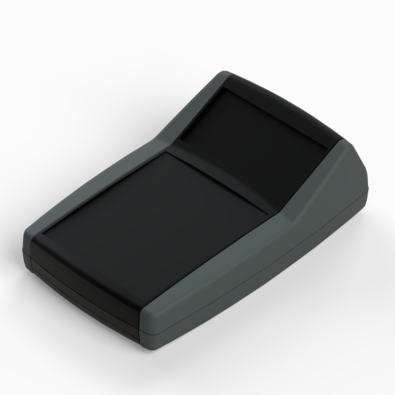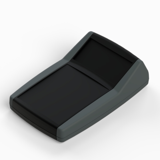 Contenitore palmare in ABS con ai lati profili in poliuretano (TPU). Superfici opache con aree superiori ribassate per alloggiamento tastiera a membrana o display. I modelli contrassegnati da “B” sono dotati di alloggiamento per due batterie stilo da 1,5V (AA) oppure una batteria da 9V (PP3). I modelli contrassegnati da “B2” sono dotati di alloggiamento per quattro batterie stilo da 1,5V (AA) oppure due batterie da 9V (PP3). Chiusura con quattro viti. Disponibili in due combinazioni di colore: Nero RAL 9004/Grigio scuro RAL 7012 - Bianco RAL 9002/Grigio chiaro RAL9018.