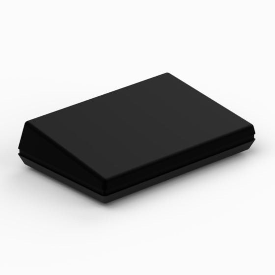 Contenitore in ABS con superfici opache e coperchio inclinato. All’interno sono presenti punti di fissaggio per PCB. Chiusura a quattro viti.