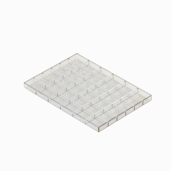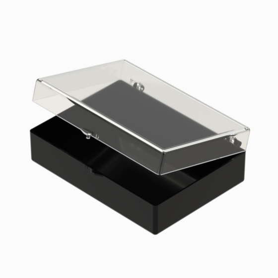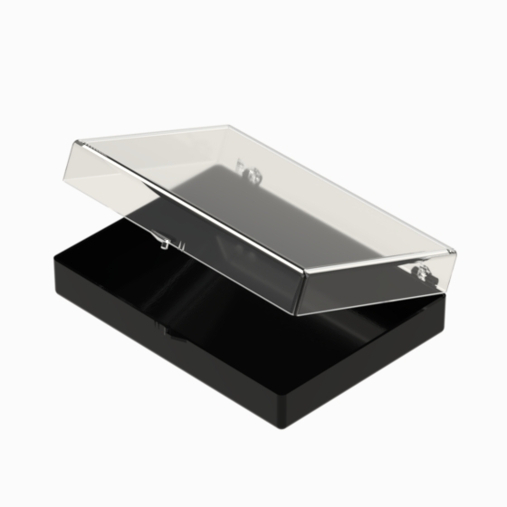 Contenitori in polistirolo con superfici lucide composto da fondo nero e coperchio trasparente. Utile per contenere e selezionare piccoli oggetti. All’interno, a seconda dell’altezza, possono essere utilizzati vassoi con 20, 28 o 36 scomparti (Mod. SCA).
