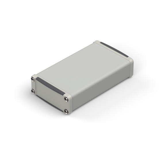 Kleingehäusereihe aus extrudierte Aluminium mit oberflächiger Pulverbeschichtung, komplett mit zweifarbigen Frontplatten, die bei der Benutzung von Doppelspritztechnik (ABS + TPU) entwickelt sind. Die Frontplatten sind mit integriertem Dichtungs-Set zum Schutz gegen Wasser und Pulver versehen (IP65). I n t e g r i e r t e Führungsrippen f ü r PCB. Verschluss m i t acht Schrauben.