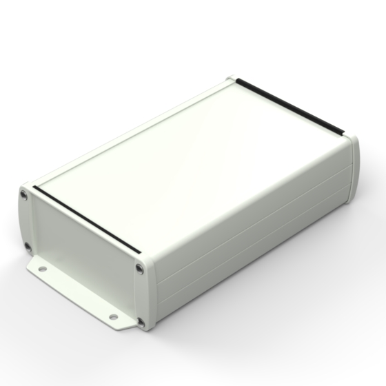 Profilgehäuse aus eloxiertem Aluminium mit oberflächiger Pulverbeschichtung. Zwei Metall- Abschlußdeckel, Dichtung-Sets für IP-65 Schutzart in sechs Farbenmöglichkeiten erhältlich, integrierte Führungsrippen für PCB und eingelassene Oberfläche zur Aufnahme einer Tastatur. Die Modelle mit „E“ haben Metall-Frontlaschen zur Wandbefestigung. Montage mit vier oder acht Schrauben.