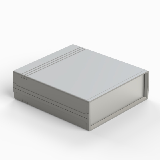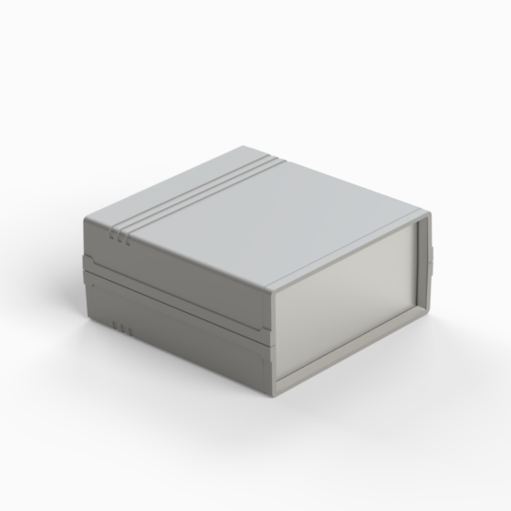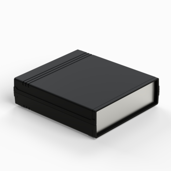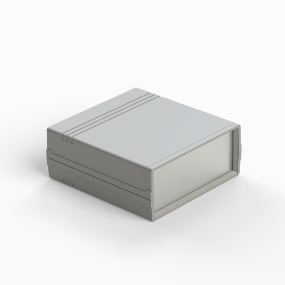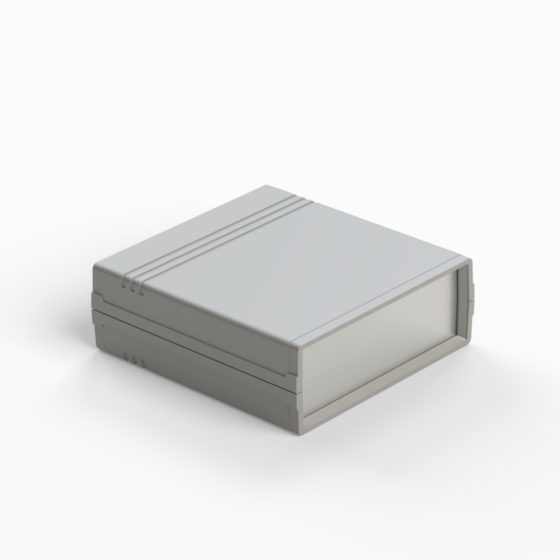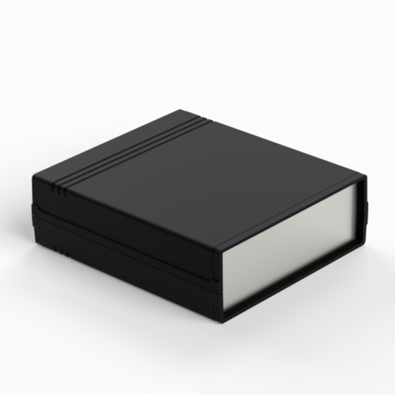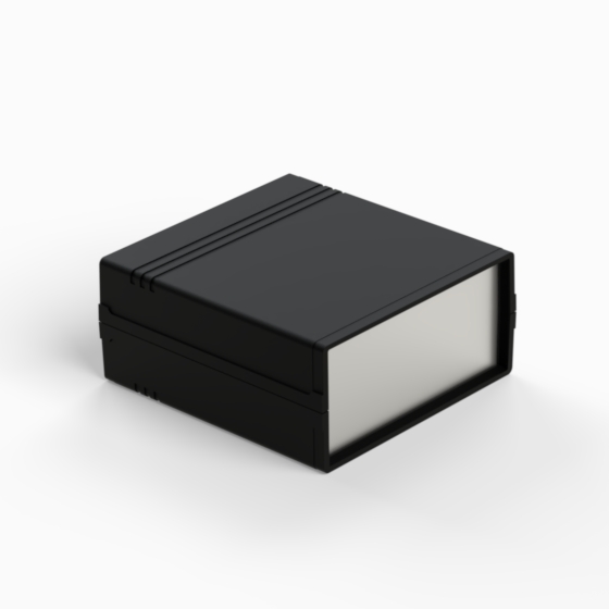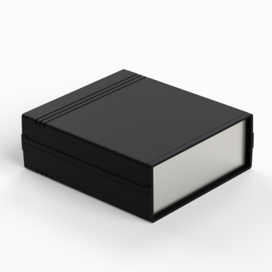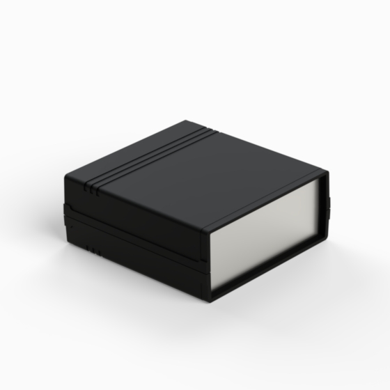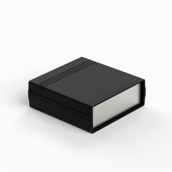 Kunststoffgehäuse mit Fach für 9V-Batterie in der Rückwand. Jede Hälfte hat integrierte Führungen und Montagepfeiler für PCB. Matte Oberfläche. Montage mit nur 2 Schrauben. Auch mit hellgrauen ABS (Farbenkod .13) erhältlich. Version mit Plastikplatte: 011P-B, 012P-B, 022P-B, 222P-B, 223P-B, 233P-B.