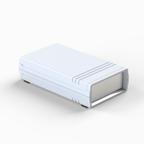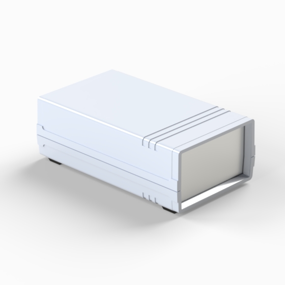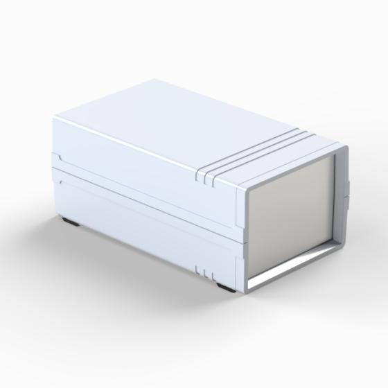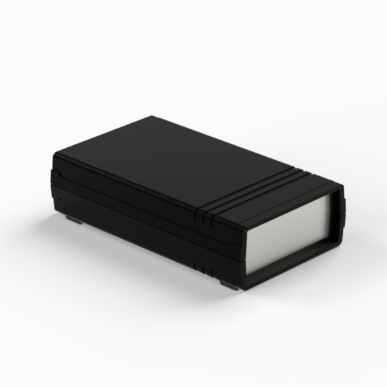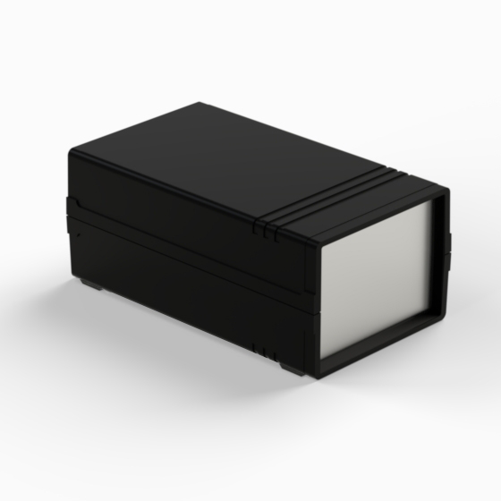 Kunststoffgehäuse mit zwei 1 mm starken Deckplatten aus Aluminium. Jede Hälfte hat integrierte Führungen und Montagepfeiler für PCB. Matte Oberfläche. Montage mit nur 2 Schrauben. Mit Plastikplatten erhältlich (Mod. PPD1. PPD2, PPD3).