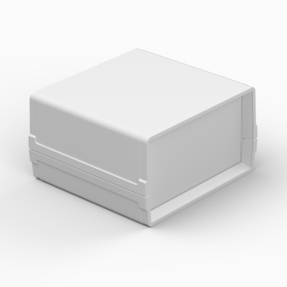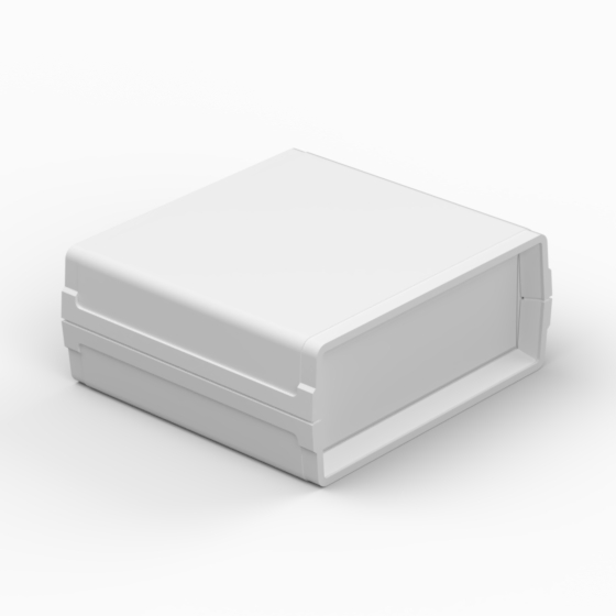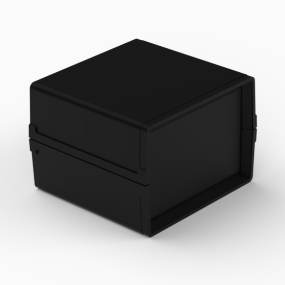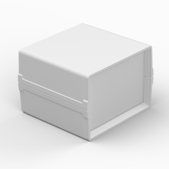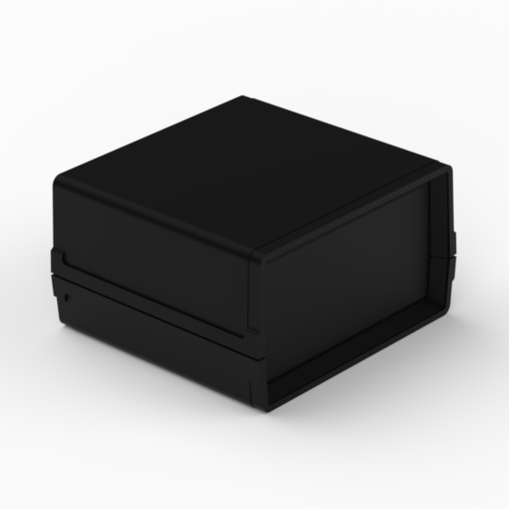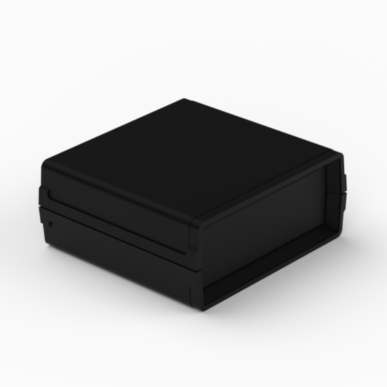 Kleines Polystyrolgehäuse mit Front- und Rückplatte. Jede Hälfte besitzt integrierte Führungen und Montagepfeiler für PCB. Matte Oberfläche. Montage mit nur zwei Schrauben. Nach Anfrage sind Aluminiumplatte lieferbar (AP11, AP12, AP22).