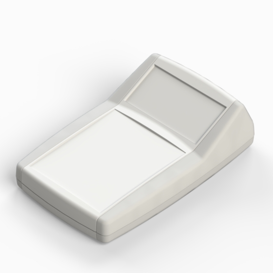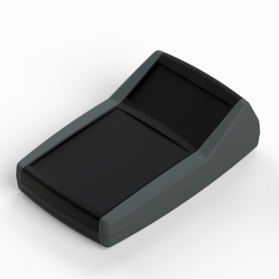 ABS Handgehäuse mit soften Elastomerekonturen (TPU). Matte Oberfläche, eingelassener Bedienungsplatz zur Aufnahme einer Tastatur oder eines Displays. Die Modelle mit „B“ haben ein Fach für zwei 1,5V Mignon-Zelle (AA) oder eine 9V Batterie (PP3). Die Modelle mit „B2“ haben ein Fach für vier 1,5V Mignon-Zelle (AA) oder zwei 9V Batterien (PP3). Montage mit vier Schrauben. Zwei Farbenkombinationen: Schwarz RAL 9004/Dunkelgrau RAL 7012 - Weiß RAL 9002/Hellgrau RAL 9018.