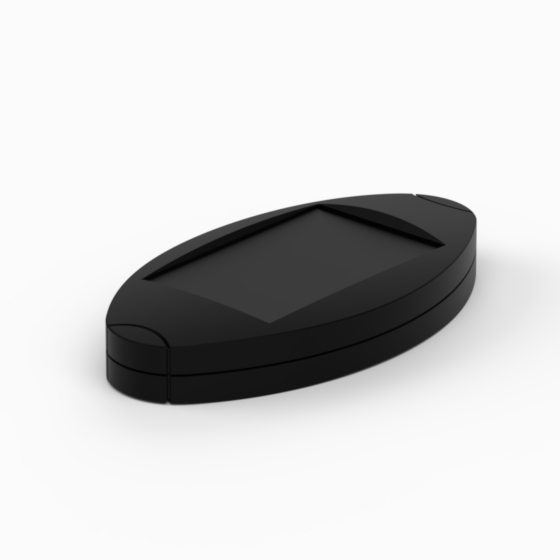 Ergonomisch geformtes Kunststoffgehäuse mit einer eingelassenen Fläche zur Aufnahme von Folientastaturen. Matte Oberfläche. Volumen für zwei 1,5 Microzelle (AAA). Das Modell „OVO1-IR“ hat einen LED-Vorderausschnitt. Verschluß mit zwei Schrauben.