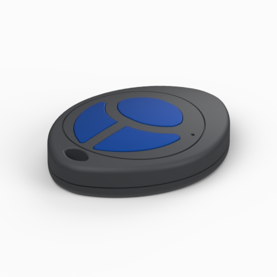 Ergonomisch geformtes Taschengehäuse mit eins, zwei oder drei Drucktasten schutzart in sechs Farbenmöglichkeiten erhältlich. Platz für einen abgerundeten PCB (35 mm) mit Knopfzelle-Batterie. Das Model “OVO-3/0” hat keine Drucktasten. Matte Oberfläche.