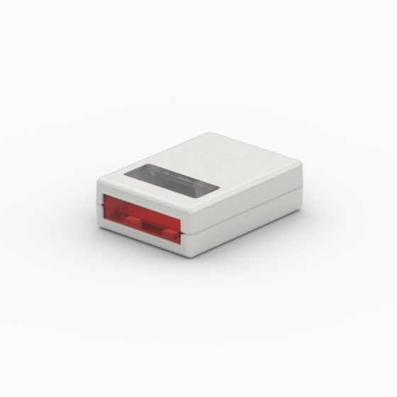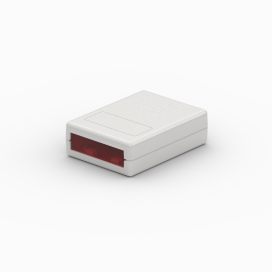 Kunststoffgehäuse mit abgerundeten Ecken. 9V-Batteriefach mit einschiebbarem Schnappdeckel. Das Modell „10124“ hat eins, zwei oder vier blaue Drucktasten. Die Modelle „10015-DW1“ hat ein transparentes Sichtfenster im Oberteil. Die Modelle „10005-B“, „10005-DW1“ und „10124“ haben eine IR-Frontplatte, ersatzbar durch eine in dem Gehäusematerial und Farbe gefertigte Frontplatte. Matte Oberfläche. Montage mit nur einer Schraube. Nach Anfrage, Ansteckclip aus rostfreiem Stahl (Mod. CL1).