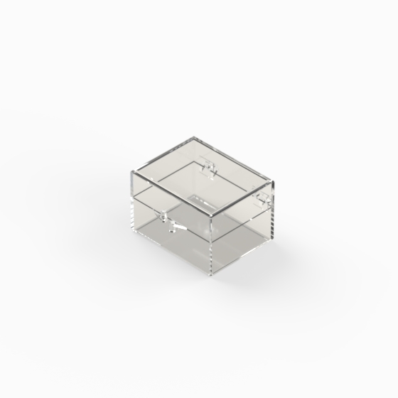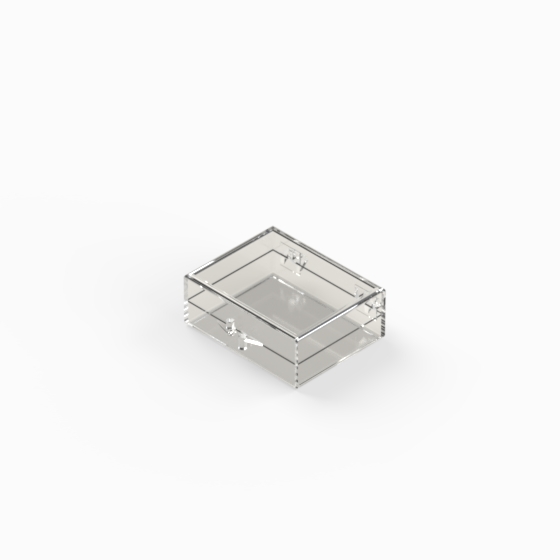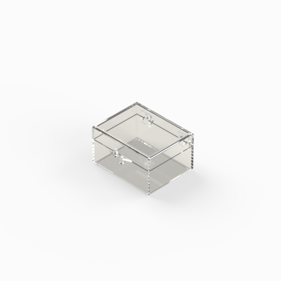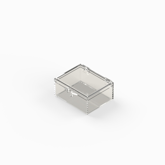 Aufbewahrungsboxen von kleiner Abmessungen mit transparentem Klappdeckel aus Polystyrol gefertigt und Boden. Glänzende Oberfläche.
