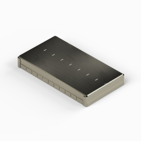 Feuerverzinktes Stahlblechgehäuse mit gefiedertem Schnappdeckel und vertikalen Teilen, die mit Loch und Ausschnitt für die Verdrahtung vorhanden sind. Die Gehäuseformgebung ermöglicht eine bequeme Montage von hochprofessionellen Leiterplatten.